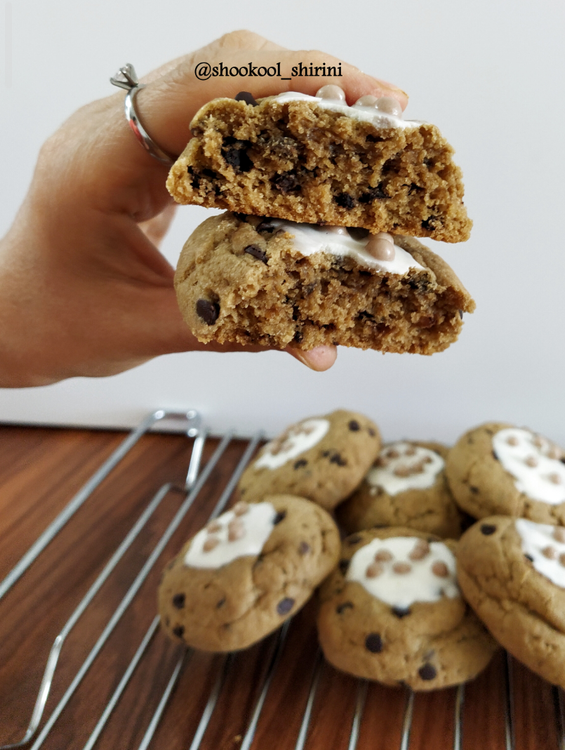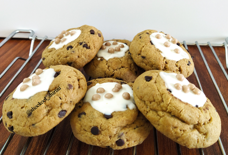تزیین روی کوکی با شکلات سفید هست که طعم کوکی را خیلی متعادل و دلچسب میکنم.😍